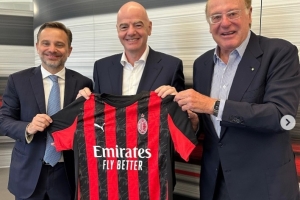 因凡蒂诺在社交媒体上写道:“很高兴与AC米兰主席斯卡罗尼以及CEO富拉尼会面,一起探讨了足球、国际赛事以及基础设施等话题。”