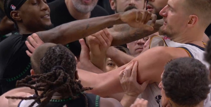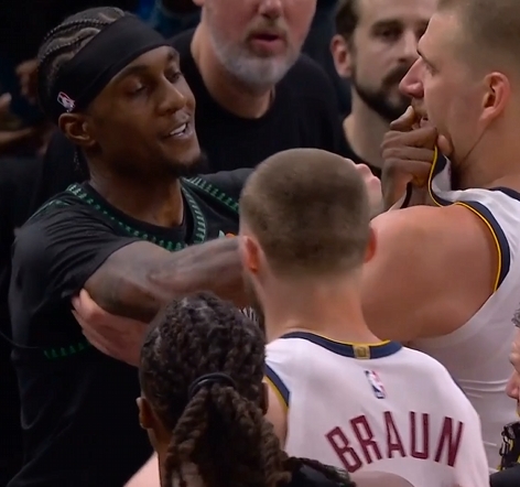 GIF-小麦上空篮约基奇冲过来要说法