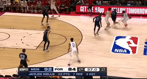 第三节开拓者卡莱布·乐福拿下8分,灰熊泰勒-伯顿拿下6分,第三节结束开拓者62-60领先灰熊