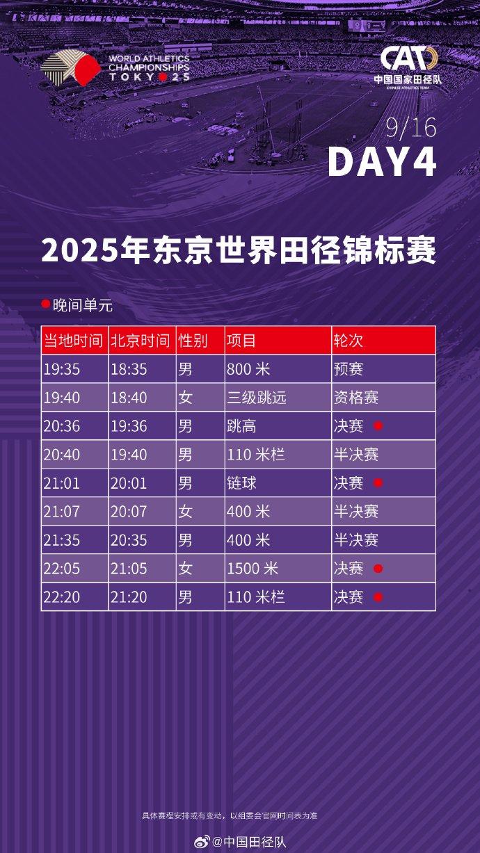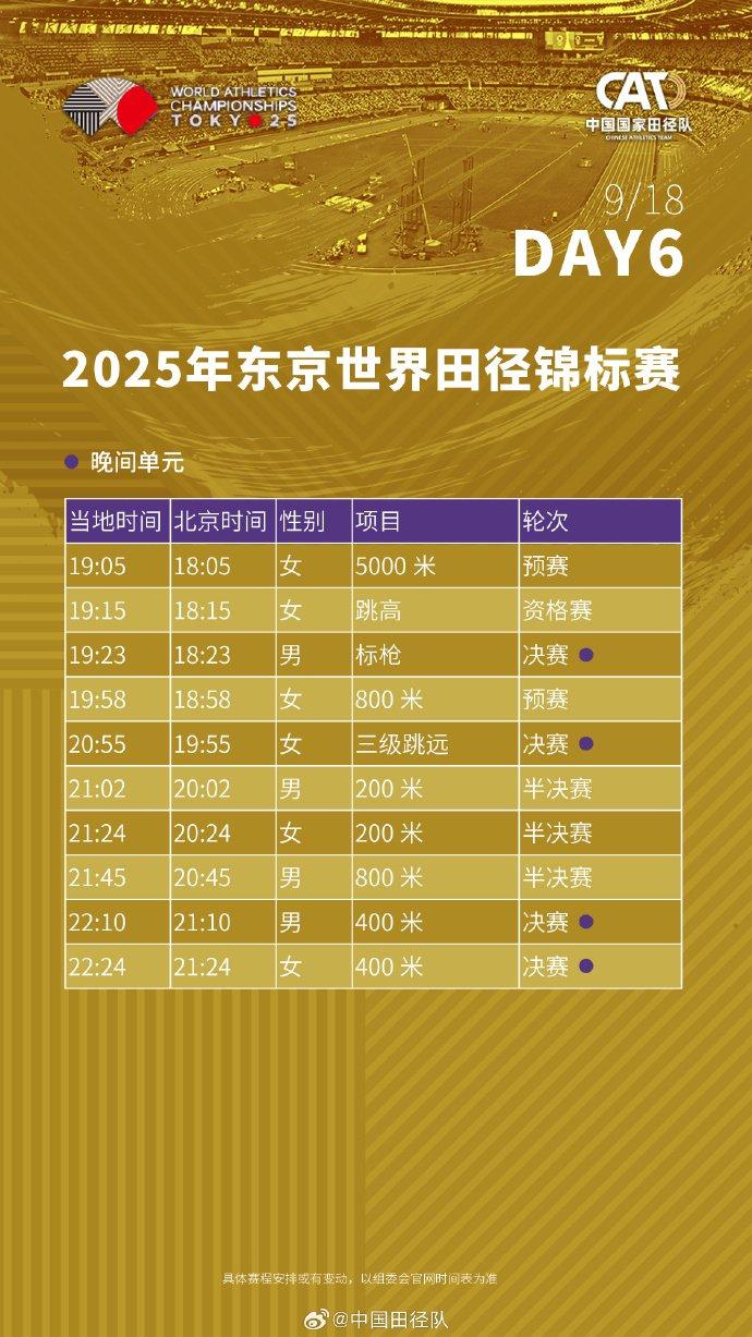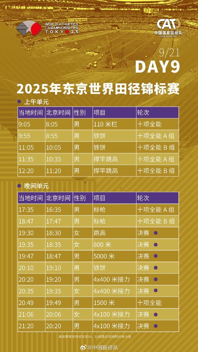 #2025东京田径世锦赛赛程# 中国田径队将派出73名运动员(男运动员41人、女运动员32人),参与田径世锦赛33个小项的比拼。